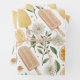 This set of 3 flat wrapping paper sheets features a hand-drawn pattern of lemon popsicles, citrus slices, blooming daisies, and soft greenery.