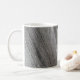 The image on the 11 oz., classic, coffee mug is a vibrant pink-purple Morning Glory wildflower protruding through the boards of a grey wood fence, and casts a shadow.