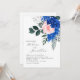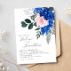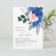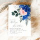 Floral Cobalt Blue Pink Garden Elegant Wedding Invitation