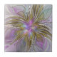Floral Colourful Abstract Fractal With Pink & Gold Ceramic Tile
