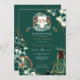 Floral Crest Emerald Green Charro Quinceanera Gown Invitation
