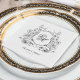 These Floral Crest Monogram Elegant Wedding paper napkins in classic black and white feature an ornate chinoiserie style vintage floral crest framing the elegant script calligraphy wedding monogram.