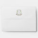 Elegant and rustic hand painted watercolor design by Shelby Allison featuring a family crest style shield and monogram surrounded by intricate flower and leaf details.