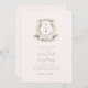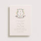Elegant and rustic hand painted watercolor design by Shelby Allison featuring a family crest style shield and monogram surrounded by intricate flower and leaf details.