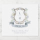Elegant and rustic hand painted watercolor design by Shelby Allison featuring a family crest style shield and monogram surrounded by intricate flower and leaf details.