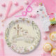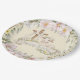 This easter plate deign has a watercolor cross with cute lamb adorned in flowers and text that says "Happy Easter." Colors used include olive green, pink, cream, yellow and brown. All text is editable to meet the needs of your event.