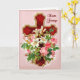 Red and gold vintage cross with a profusion of pretty flowers has been carefully retouched to bring out the wonderful details. There are white Easter Lillies and lush pink Roses. Card Front has rich pink background. A lovely Easter card ready for you to personalise inside.