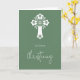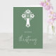 A fern green christening card with a white floral cross. Part of the Floral Cross Christening Collection.