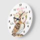 Sweet girl's owl themed nursery clock featuring a watercolor owl and pink floral crown. This wall clock is ideal for a girl's owl or woodland theme nursery.