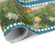 The image on this product depicts a garden of Spring flowers; the colourful blooms in lovely hues of yellow, white, pink, purple, lavender, and fuchsia, with a fun polka dot trim.