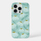 Floral Daisies Pattern Teal Blue & Olive Green iPhone Case
