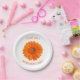 A modern and fresh looking Paper Plate with an orange Gerbera Daisy for your Bachelorette Party. There are other matching items for you great day available.
