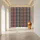 This tile features a vibrant floral damask pattern with a Scandinavian-inspired colour palette of blues, reds, and creams. The design is symmetrical and creates a visually appealing focal point for any room. Perfect for kitchens, bathrooms, or as a decorative accent.