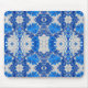 Mouse Pad in a damask pattern based on a William Morris floral, digitally enhanced and coloured - shades of medium to dark sapphire blue and white, against a light silver grey / grey background