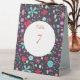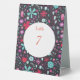 Modern botanical watercolor painting of aqua blue and purple wild flowers on a dark background. Original art by Nic Squirrell. Coordinating double sided table number card with text which can be altered to suit your celebration.