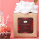 Make a lasting impression with this elegant and exotic product label design featuring pretty red hawaiian flowers with palm leaves on a dark red background. A cool palm leaf shadow matching to the shimmery border frame.
