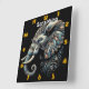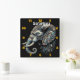 An intricately designed elephant stands majestically, adorned with beautiful floral patterns. The soft light of dawn enhances its elegance, symbolising strength and beauty in nature.