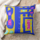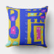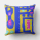 Floral Decal Ethnic Print Blue Mustard White Cushion