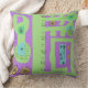 Floral Decal Ethnic Print Green Purple Black Cushion