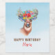 Modern boho deer with colourful flowers over gradient blue background. Optional monogram
