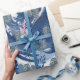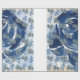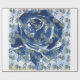 A deep blue rose fills the centre, surrounded by delicate leaves creating a harmonious, natural pattern. The light and dark shades of blue enhance the depth and contrast, giving a serene and calming effect.