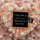 A beautiful pastel pink and white floral arrangement pregnancy announcement