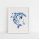 Playful yet elegant, this blue-and-white floral dolphin illustration brings energy and joy to any coastal interior. The soft beige background enhances its classic nautical charm, making it perfect for beach houses, ocean-view dining rooms, or children’s spaces with a seaside theme. A delightful piece for dolphin lovers and maritime enthusiasts alike.
