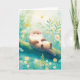 This adorable otter rests on a log surrounded by bright yellow and white flowers. The serene background features soft blues and greens, with the otter peacefully floating in the water. The joyful expression on the otter’s face adds to the tranquillity of the scene, making it perfect for nature lovers and those who appreciate peaceful wildlife illustrations.