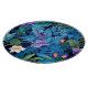 Beautiful tropical floral design in shades of blues, purple, and green on this cutting board