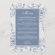 Floral Dusty Blue Elegant Wedding Menu. A Wedding Menu with an elegant floral design. Beautiful dusty blue flowers on a light background. Perfect for spring and summer weddings.