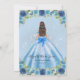 Floral Dusty Blue Light Baby Sky Blue Pastel Princess Gown Dress Silver Grey Glitter Sparkle 15th Birthday Quinceanera Invitation