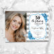 Floral Dusty Blue Silver White Photo 50th Birthday Invitation