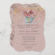 "Floral Dusty Rose Bee Gold Glitter Bridal Showerr Invitation." 5" x 7" size with Bracket shaped invitation (you can change this option). A romantic, feminine design with dusty pink roses in a soft pastel French blue teapot over a dusty pink background with script calligraphy typography scrolls and flourishes. Graphically designed by internationally licensed artist and designer, Audrey Jeanne Roberts, copyright, all rights reserved.
