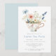 This design features a whimsical watercolor illustration of a teacup full of flowers. Perfect for Easter tea.