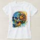 This striking design features a vibrant skull, seamlessly blending the raw elements of electricity and fire with the delicate beauty of flowers. The left side of the skull is animated with intense blue electric currents, symbolising energy and power. On the right side, bright flames in shades of orange and yellow intermingle with an array of vividly coloured flowers, including daisies, sunflowers, and various wildflowers in pink, white, and yellow. The flora and flames grow out of the skull, creating a mesmerising contrast between the chaotic energy and the serene beauty of nature. The design encapsulates a harmonious yet powerful juxtaposition, making it a standout piece for those who appreciate bold and artistic expressions.
