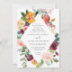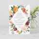 An elegant, modern wedding invitation with an autumn theme. Fall flowers and foliage create a diamond frame around the wedding invitation text. The autumn watercolor floral includes yellow and plum roses, blush flowers, dusty red mums, and fall leaves. The autumn wedding invitation includes space for the couple's first and last names. Personalise the fall wedding invite with your wedding details. This invite matches our "Autumn Elegance" collection.