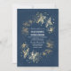 Gold flowers, confetti dots, and old navy vintage background wedding invitations. --- All design elements created by Jinaiji