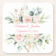 Floral Elegant Pink Chic Date Script Name Wedding Square Paper Coaster