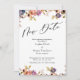 If your wedding plans have unavoidably changed, this elegant floral card could be the perfect option for you. Featuring a luxury calligraphy font, the header reads "New Date". Details are flanked with loose, artistic watercolor flowers in shades of purple and orange. Use the template fields to add your personal details. // 137 //