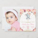 Floral Elephant Christening Baptism Girl Photo Invitation