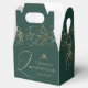 Floral Quinceañera favour box. Modern design in emerald green and gold with gorgeous flowers and calligraphy sign. Add your own text with easy to use Zazzle editing tool! PLEASE NOTE: The gold details are imitation. No actual foil used.