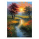 Enter a realm of serenity where a gentle river meanders, embraced by banks adorned in a riot of colourful flowers. The setting sun casts its golden glow, illuminating the scene with a tranquil radiance. In this digital artwork, reminiscent of classic oil-painting style, nature's beauty and the fleeting magic of twilight unite to create a captivating masterpiece.