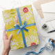 Spring Explosion abstract, modern, finger painting with yellow and red blossoms. Elegant and original wrapping paper.