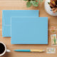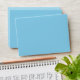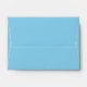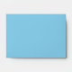 A custom envelope that features a sky blue printed background with colorful flowers printed on the inside flap.