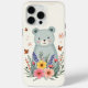 "Step into a charming world with our Beary Blossom phone case. This adorable design features a gentle, pastel blue bear nestled among a vibrant bouquet of flowers in pinks, yellows, and purples, accompanied by graceful butterflies. The whimsical illustration evokes a sense of peace and natural beauty, making your phone a delightful companion. It's a sweet and playful design that celebrates nature and cuteness."
