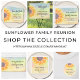These family reunion return address labels are decorated with a yellow sunflower on a watercolor background.