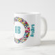 Elevate your beverage experience with our custom jumbo mug, featuring an exquisite ring adorned with a detailed floral pattern. This stunning design showcases a multitude of petite flowers in vibrant colours, beautifully contrasted against a deep navy background. Personalise your mug with a name on the left, a surname on the right, and initials at the centre for a unique touch. Perfect for gifting or treating yourself, this jumbo mug combines functionality with artistry, making it a standout addition to your collection. Enjoy your favourite drinks in style!