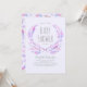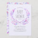 Rustic woodland and lavender purple watercolors baby shower invitation with flowers, feathers, and deer antlers.