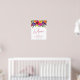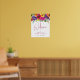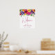 A colourful summer baby shower welcome sign. This design features a large top boarder of vibrant watercolor flowers in purple, pink, yellow and orange, and "welcome" in dark pink modern handwritten style font. Personalise with your details.