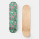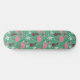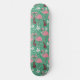 Floral flamingo seamless pattern pink green skateboard